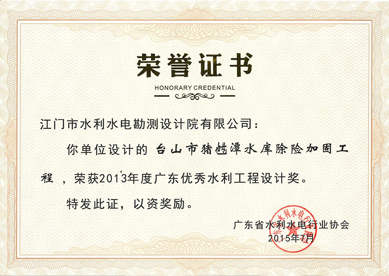 臺(tái)山市豬乸潭水庫(kù)出現(xiàn)加固工程獲得省優(yōu)秀設(shè)計(jì)獎(jiǎng)