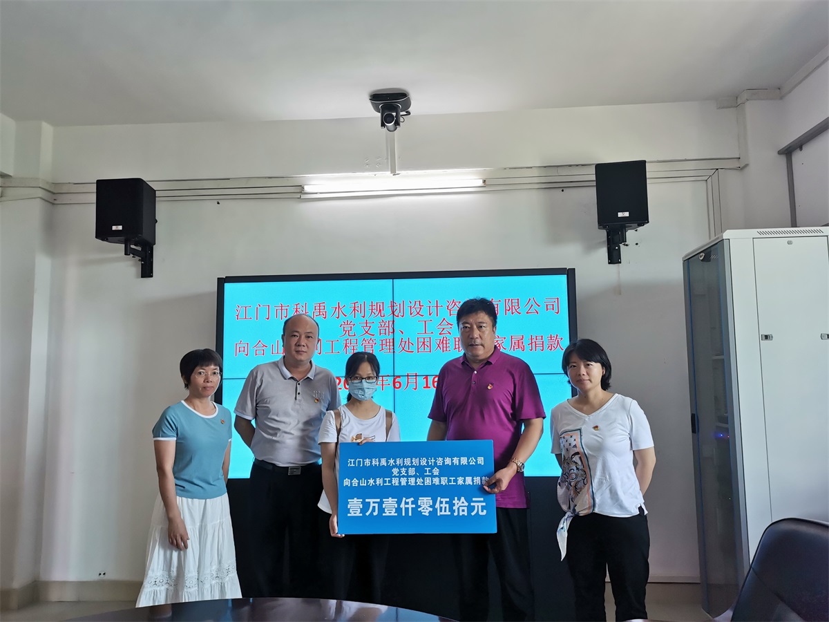6月16日上午,科禹水利黨支部書記戶朝旺同志帶著全體黨員、職工愛心來到合山水利工程管理處,把科禹水利黨支部、工會的愛心捐款交到困難職工家屬手上。