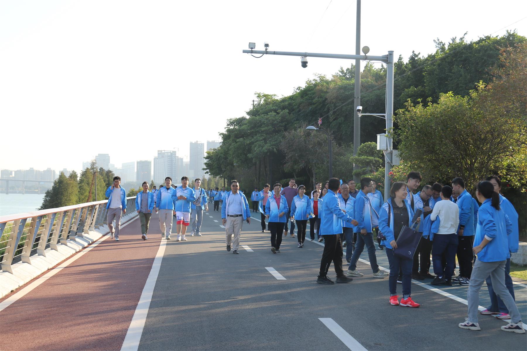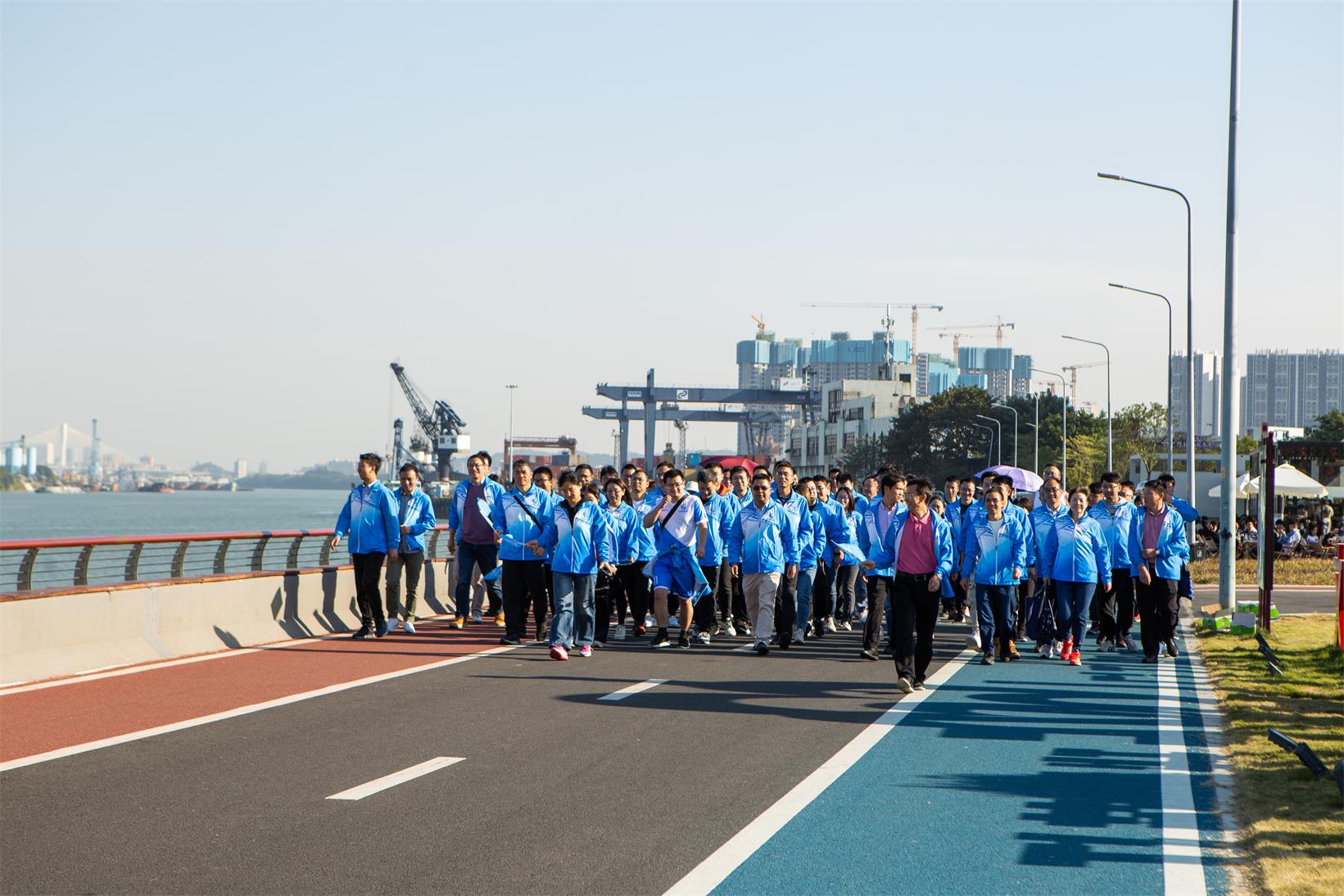 活動前,全體員工集體拍照合影留念,隨后,活動正式開始,全體員工從蓬江國際馬拉松公園出發(fā),浩浩蕩蕩地沿著碧道向篁邊驛站點前行,井然有序的隊伍形成了一道亮麗的風(fēng)景。經(jīng)過1小時的徒步走,所有員工順利完成5公里的行程,為健步走活動畫上一個完美的句號。