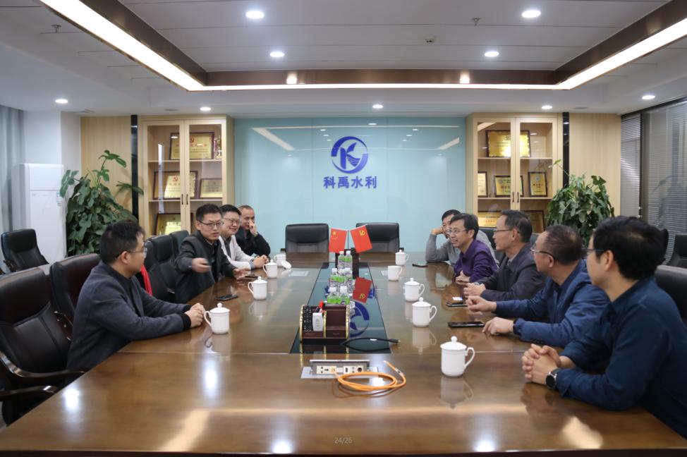 在何民輝帶領(lǐng)下,廣東中灝、廣東珠榮一行實(shí)地參觀了科禹水利的新辦公樓,并贈(zèng)予喬遷賀禮,恭祝科禹水利喬遷之喜。