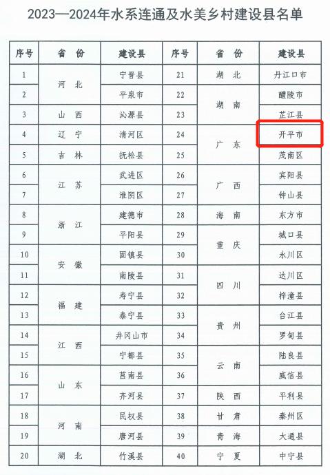 近日,水利部、財(cái)政部聯(lián)合發(fā)文公布了《2023-2024年水系連通及水美鄉(xiāng)村建設(shè)縣名單》,江門開平市成功上榜,將獲得國家資金支持,用于開展水系連通及水美鄉(xiāng)村建設(shè)。這是我公司繼去年助力江門鶴山市入選后,再次助力江門開平市競得全國水系連通及水美鄉(xiāng)村建設(shè)縣榮譽(yù)。