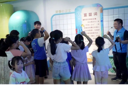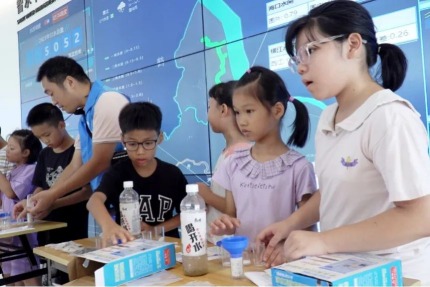 在江門蓬江智水展示中心,節(jié)水宣講員借助展廳內(nèi)的演示沙盤、華夏水文化墻以及節(jié)水科普視頻,帶領(lǐng)孩子們了解當(dāng)?shù)氐乃h(huán)境和水文化。通過節(jié)水倡議、觀看沙盤演示、有獎(jiǎng)互動(dòng)、科學(xué)實(shí)驗(yàn)等環(huán)節(jié),讓孩子們了解蓬江區(qū)的水資源現(xiàn)狀及節(jié)水的重要意義,科學(xué)普及“什么是節(jié)約用水”、“為什么節(jié)約用水”、“怎樣節(jié)約用水”等基本問題,感受生命之源在我們生活中的重要性,并倡導(dǎo)大家付諸行動(dòng),從自身做起,珍惜每一滴水,樹立節(jié)約用水的好習(xí)慣。