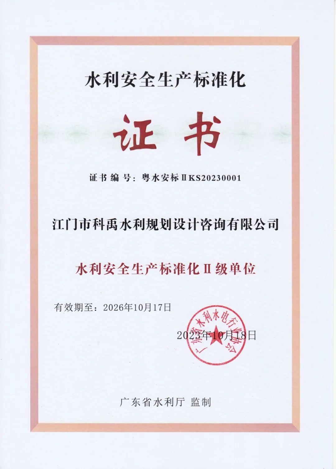 近日,我公司順利通過廣東省水利安全生產(chǎn)標準化二級達標評審,成功獲評“水利安全生產(chǎn)標準化二級單位”。