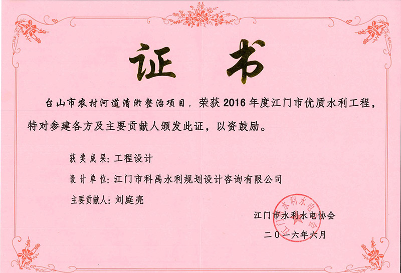 臺山市農(nóng)村河道清淤整治項目獲市優(yōu)質(zhì)水利工程獎