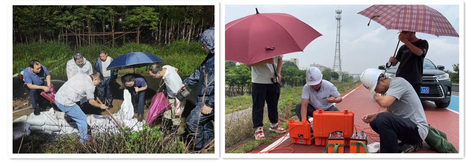 近期受連續(xù)強(qiáng)降雨、西北江上游來(lái)水和天文大潮疊加影響,我市西江水位持續(xù)高漲。市委、市政府高度重視西江洪水防御工作,要求從嚴(yán)從細(xì)從實(shí)做好西江洪水防御工作。作為江門(mén)市防汛抗旱專業(yè)應(yīng)急搶險(xiǎn)技術(shù)支撐單位——科禹水利根據(jù)江門(mén)市防汛工作部署,迅速進(jìn)入作戰(zhàn)狀態(tài),扎實(shí)做好洪水防御工作,動(dòng)員專業(yè)技術(shù)力量,認(rèn)真開(kāi)展落實(shí)各項(xiàng)防汛搶險(xiǎn)技術(shù)支撐工作。 汛情是命令,防汛搶險(xiǎn)是責(zé)任! 科禹水利領(lǐng)導(dǎo)班子率先垂范,靠前指揮,做好搶險(xiǎn)隊(duì)伍、設(shè)備物資等應(yīng)急搶險(xiǎn)準(zhǔn)備工作。公司組建了一支由董事長(zhǎng)何民輝同志擔(dān)任組長(zhǎng),總工程師、各部門(mén)負(fù)責(zé)人及技術(shù)骨干為組員的科禹水利防汛搶險(xiǎn)專業(yè)隊(duì)伍,統(tǒng)籌開(kāi)展各項(xiàng)防汛搶險(xiǎn)工作,提升搶險(xiǎn)工作反應(yīng)速度和應(yīng)急處置能力。公司全面落實(shí)防汛抗洪搶險(xiǎn)救災(zāi)保障工作,統(tǒng)一配備防汛搶險(xiǎn)裝備物資,做好探照燈、雨衣、雨靴等應(yīng)急裝備物資配發(fā),確保關(guān)鍵時(shí)刻調(diào)得出用得上,保障搶險(xiǎn)應(yīng)急工作順利開(kāi)展。科禹水利始終保持強(qiáng)烈的責(zé)任感和使命感,履行水旱災(zāi)害防御責(zé)任,嚴(yán)格遵守防汛紀(jì)律,時(shí)刻待命,密切跟蹤留意險(xiǎn)情,在防汛搶險(xiǎn)一線現(xiàn)場(chǎng)用專業(yè)的技術(shù),排查處理險(xiǎn)情,全力以赴打贏防汛搶險(xiǎn)這場(chǎng)硬仗。 奔赴一線,緊急馳援! 在臺(tái)山市深井鎮(zhèn)大坑水庫(kù)、蓬江區(qū)荷塘白藤西泵站、棠下南沖電排站、荷塘圍褪下段、江新聯(lián)圍江海段(港澳碼頭至中央糧庫(kù)段)防汛搶險(xiǎn)工作中,科禹水利第一時(shí)間派出技術(shù)專家趕赴現(xiàn)場(chǎng),制定搶險(xiǎn)工作方案,指導(dǎo)搶險(xiǎn)人員實(shí)施,及時(shí)有效緩解和排除險(xiǎn)情,為確保江門(mén)市江河安瀾提供強(qiáng)有力的技術(shù)支撐。截至目前,科禹水利共派出一線搶險(xiǎn)專家11批32人次。專業(yè)、專心、專注的科禹水利人,與廣大水利工程管理人員站在同一條戰(zhàn)線,消除了一處又一處險(xiǎn)情,贏得相關(guān)水行政主管部門(mén)的高度評(píng)價(jià)。 6月14日,荷塘白藤西泵站施工現(xiàn)場(chǎng)圍堰漫頂,西江水倒灌圍內(nèi)。公司副總經(jīng)理聶長(zhǎng)根同志第一時(shí)間帶隊(duì)馳援現(xiàn)場(chǎng),提出科學(xué)應(yīng)急處理方案,指導(dǎo)實(shí)施搶險(xiǎn)應(yīng)急工程,在現(xiàn)有圍堰后方填筑臨時(shí)圍堰,達(dá)到加固加高圍堰的目的,并利用西閘電排站抽排基坑水,控制內(nèi)涌水位,保證內(nèi)圍不受淹,有效控制險(xiǎn)情,確保人民群眾生命財(cái)產(chǎn)安全。 6月15日傍晚,西江水位上漲,洪峰過(guò)境時(shí)西江水位3.4m,江新聯(lián)圍江海段港澳碼頭至中央糧庫(kù)段堤內(nèi)出現(xiàn)不同程度的滲漏。副總工程師馮仲明同志深夜趕赴現(xiàn)場(chǎng)查勘,了解滲漏程度,在第二天早上現(xiàn)場(chǎng)條件允許情況下,立刻開(kāi)展物探工作,掌握堤身滲漏情況,提出應(yīng)急處理方案,在堤后采用砂石反濾導(dǎo)滲,后續(xù)落實(shí)防滲工程設(shè)計(jì)方案控制險(xiǎn)情。 6月21日,蓬江區(qū)荷塘圍褪下段出現(xiàn)堤后擋土墻和堤腳多處滲漏險(xiǎn)情。副總經(jīng)理聶長(zhǎng)根同志和副總工程師陳偉恒同志迅速到達(dá)現(xiàn)場(chǎng),快速科學(xué)研判,果斷處置險(xiǎn)情,制定搶險(xiǎn)方案,深夜現(xiàn)場(chǎng)指導(dǎo)方案實(shí)施,在擋土墻冒水處打松木樁、硬竹圍、側(cè)邊疊沙袋,填筑土圍井,蓄水反壓。在堤腳冒水處墊彩條布填筑圍井蓄水反壓,并采用拋填碎石在圍井內(nèi)部反濾導(dǎo)滲,防止堤身土隨著滲流帶走。通過(guò)以上處理方案的實(shí)施,有效減小了內(nèi)外江水位差,險(xiǎn)情得到快速有效控制,最大程度減少險(xiǎn)情的危害和影響。 對(duì)于防汛搶險(xiǎn)工作,每一分鐘都是寶貴的。當(dāng)前正值防汛關(guān)鍵期,科禹水利將充分發(fā)揮專業(yè)技術(shù)團(tuán)隊(duì)力量,切實(shí)履行職責(zé),以高度責(zé)任心和使命感,為防汛搶險(xiǎn)工作提供強(qiáng)而有力的技術(shù)支撐,用行動(dòng)踐行擔(dān)當(dāng)與使命,為奪取防汛搶險(xiǎn)工作的全面勝利保駕護(hù)航。