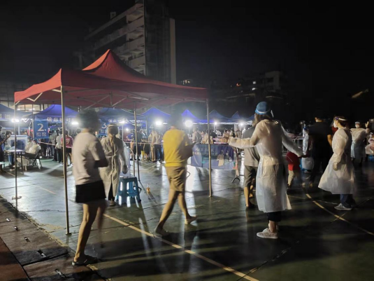 在江華社區(qū)大規(guī)模核酸檢測(cè)現(xiàn)場(chǎng),志愿者們冒著高溫的天氣下穿著悶熱的防護(hù)服,他們的衣服雖然都已經(jīng)濕透,但依然在堅(jiān)持,沒一個(gè)人說(shuō)累。“您好,請(qǐng)您在這邊登記一下”“提前掃二維碼登記信息……”“請(qǐng)出示健康碼……”“請(qǐng)大家保持一米距離……”這些平時(shí)只有做核酸才能聽到的這些話,如今被他們倒背如流,核查綠碼、維護(hù)秩序、居民信息登記、錄入居民核酸碼、守卡口......他們時(shí)刻要求著自己要事無(wú)巨細(xì)、全力以赴地做得更好。