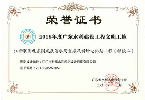 江新聯(lián)圍禮東圍龍泉滘水閘重建及新增電排站工程榮獲文明工地