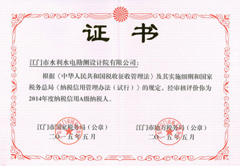 2014年度納稅信用評價A級納稅人